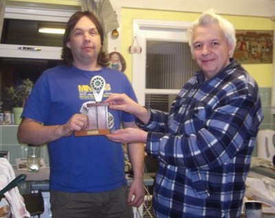 David presents Richard with the Senior Aquarist trophy Photograph