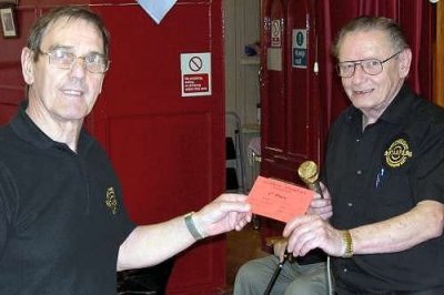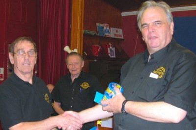 Chairman, Ken Scott, receives his first place award from John Douthwaite for a